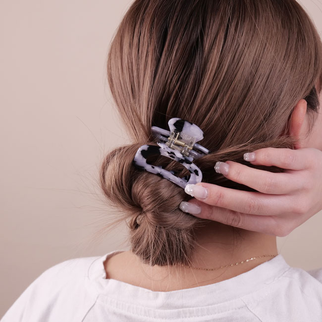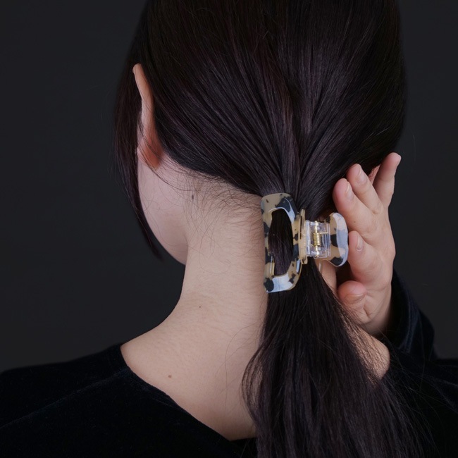 セルロースアセテート素材を使用したミディアムサイズのヘアクリップ。くり抜きデザインが抜け感を作り出し、さっとまとめるだけで一気にヘアスタイルをおしゃれに仕上げてくれるアイテム。カラー展開も豊富なので、その日の気分や服装に合わせてコーディネートも楽しんでいただけます◎